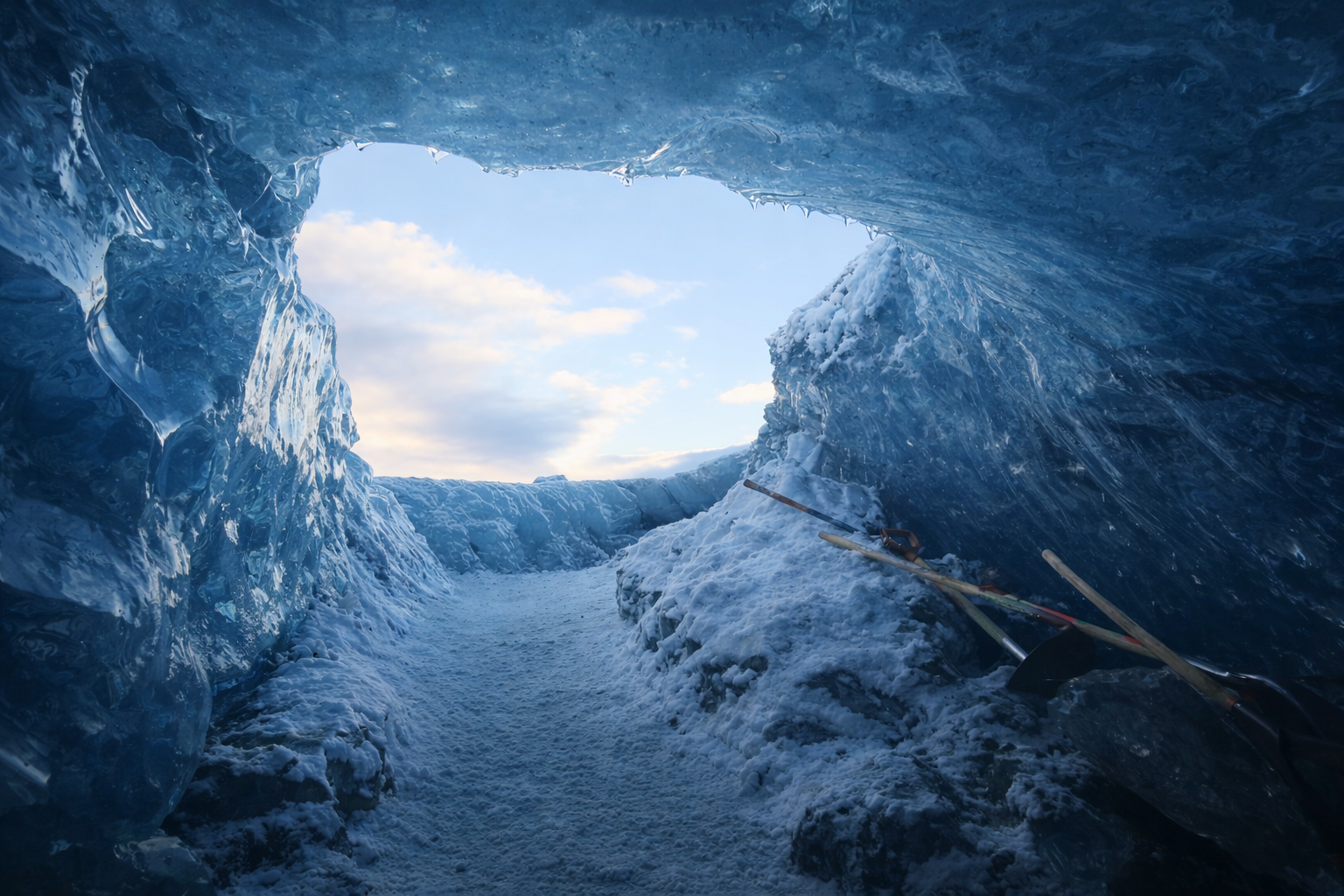 수천 년에 걸쳐 압축된 얼음은 공기를 거의 품지 않게 되면서 붉은 계열의 빛을 흡수하고, 푸른 빛만을 남긴다. 그래서 이곳의 얼음은 단순히 파란색이 아니라, 마치 안쪽에서 빛이 스스로 솟아나는 듯한 깊은 블루를 띤다.