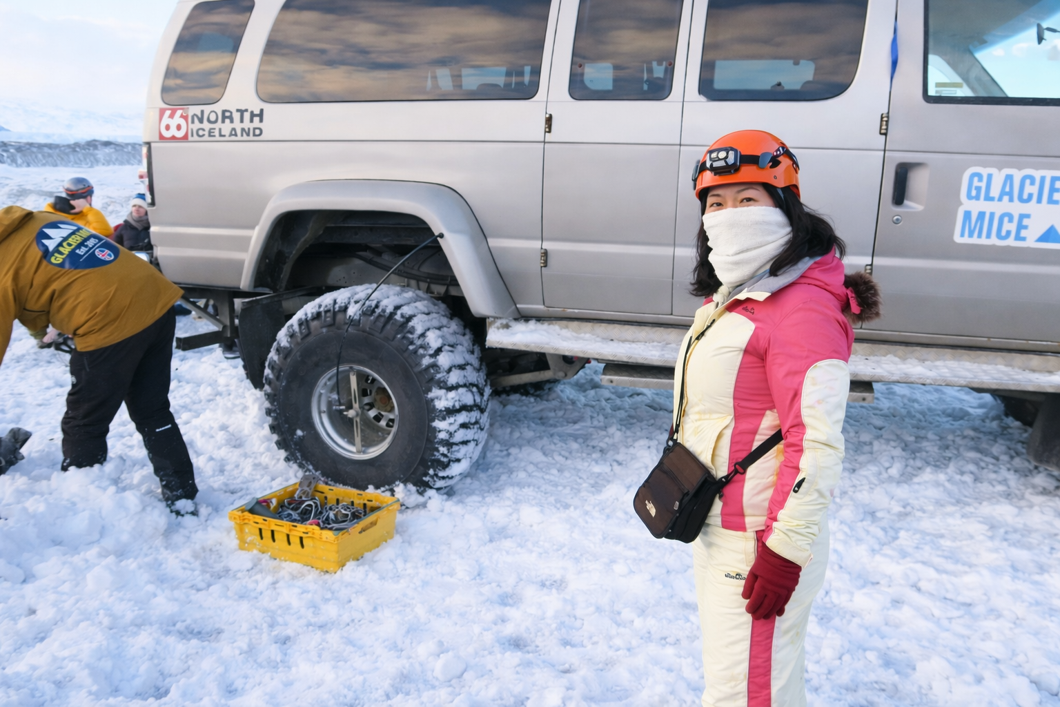 As soon as we got out of the vehicle, the guide handed out helmets and fitted crampons onto our boots. I thought we were finally ready to enter the ice cave—but an unexpected problem came up.
