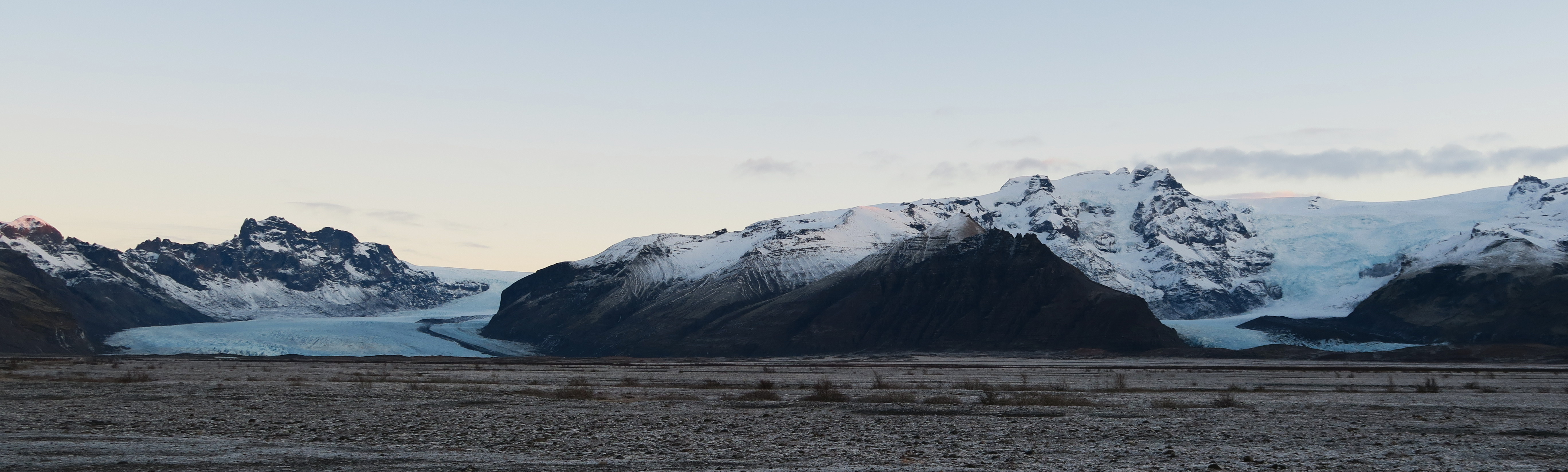 Then, over that ink-black ground, a blue hue began to seep into view. Skaftafellsjökull. One of the signature glacier tongues of Vatnajökull National Park—revealing a quiet, blue breath on top of the black earth.